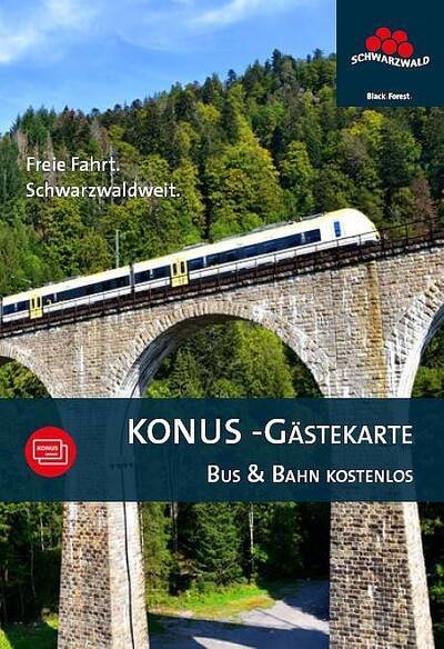 Kostenlos und Umweltschonend: In vielen Städten und Gemeinden erhalten Sie die KONUS-Gästekarte und können damit Busse und Bahnen im gesamten Schwarzwald gratis nutzen! Der Flyer zeigt den Konus Geltungsbereich.