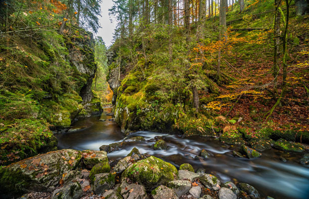 Ausgesetzte Pfade entlang steiler Felsklammen und gurgelnder Bäche, Rastplätze mit spektakulären Tiefblicken, bemooste Bäume und in der Sonne glitzernde Wassertropfen. Wutachflühen, Wutachschlucht, Schleifenbachfälle, Haslachschlucht, Windbergwasserfall, Hohwehraschlucht und Wehraschlucht sind Ziele für all jene, die es ans Wasser zieht, die gerne durch wilde Schluchten steigen, tosende Wasserfälle bestaunen, die natürliche Stille genießen und sich für eine Woche aus dem Alltag ausklinken möchten. Zwischendurch gibt es immer wieder grandiose Aussichtspunkte mit weiten Panoramen über das Gewinkel der Täler und Schluchten im Südschwarzwald bis hin zum fernen Alpenbogen. Kühe stehen auf kargen Hochweiden, irgendwo zirpt es am Wegesrand in den Blumenwiesen und gemütliche Gasthöfe in uralten Schwarzwaldhäusern warten auf hungrige Schluchtensteigwanderer.